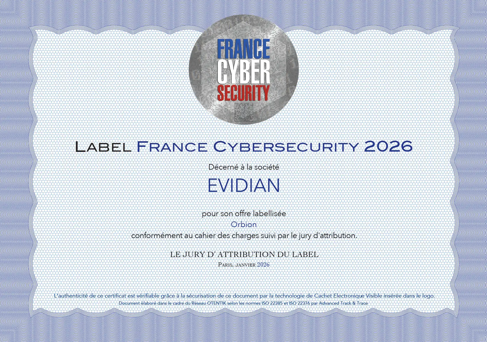 Evidian reçoit le label France Cybersecurity 2026 pour sa solution Orbion.