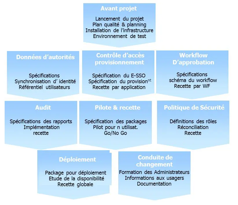 Pour ce faire, il maintient une méthodologie pour conduire des projets IAM, déployer des projets SSO d'entreprise, ou généraliser des projets d'accès distants.