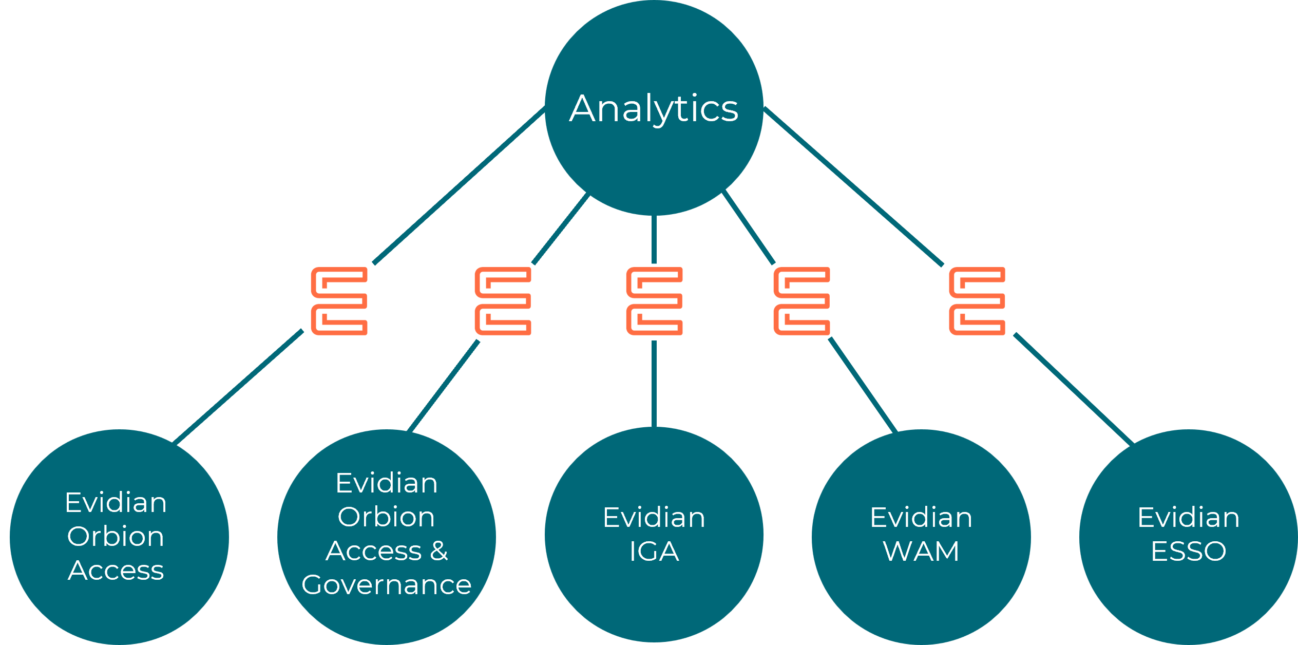 Evidian Analytics は、Evidian IAM Suite 内の他のモジュールから IAM の監査データを収集します。
