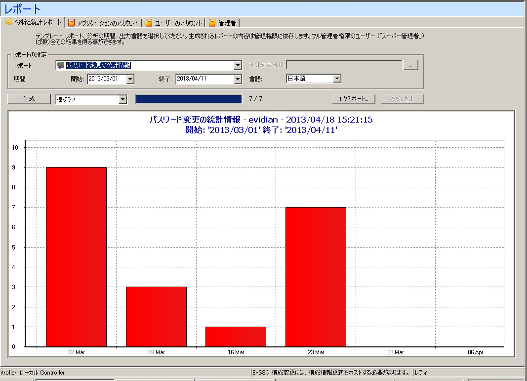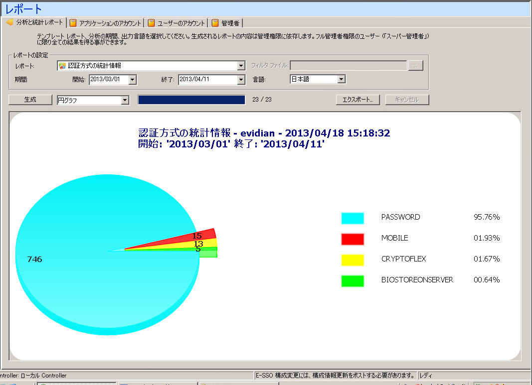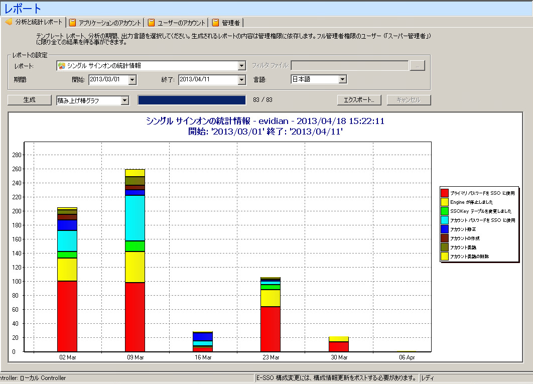 監査データベースの情報から、グラフィカルで詳細な統計レポートを作成できます。