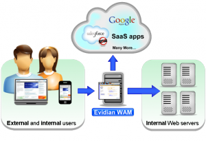 インターネット ベースの Web アプリケーションも Evidian Web Access Manager で管理できます。Evidian Web Access Manager を実装するのにアプリケーションの管理や変更の権限は必要ありません。