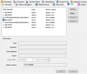- The access point security profile, associated with the access point equipped with an RFID hardware system.