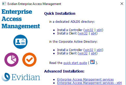 - Download the Authentication Manager or Enterprise SSO installation package from the Evidian support web site (http://support.evidian.com) and unzip it.