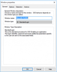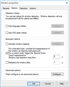 - Specific detection conditions to trigger the SSO when the window appears (Detection criteria area).