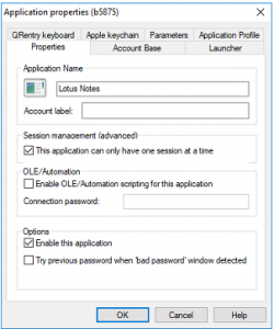 Grants OLE/Automation access to this application (and all the associated security objects) through the OLE/Automation interface of Enterprise SSO. For greater security, you can enter a password. This password will have to be provided by the OLE client. - Options
