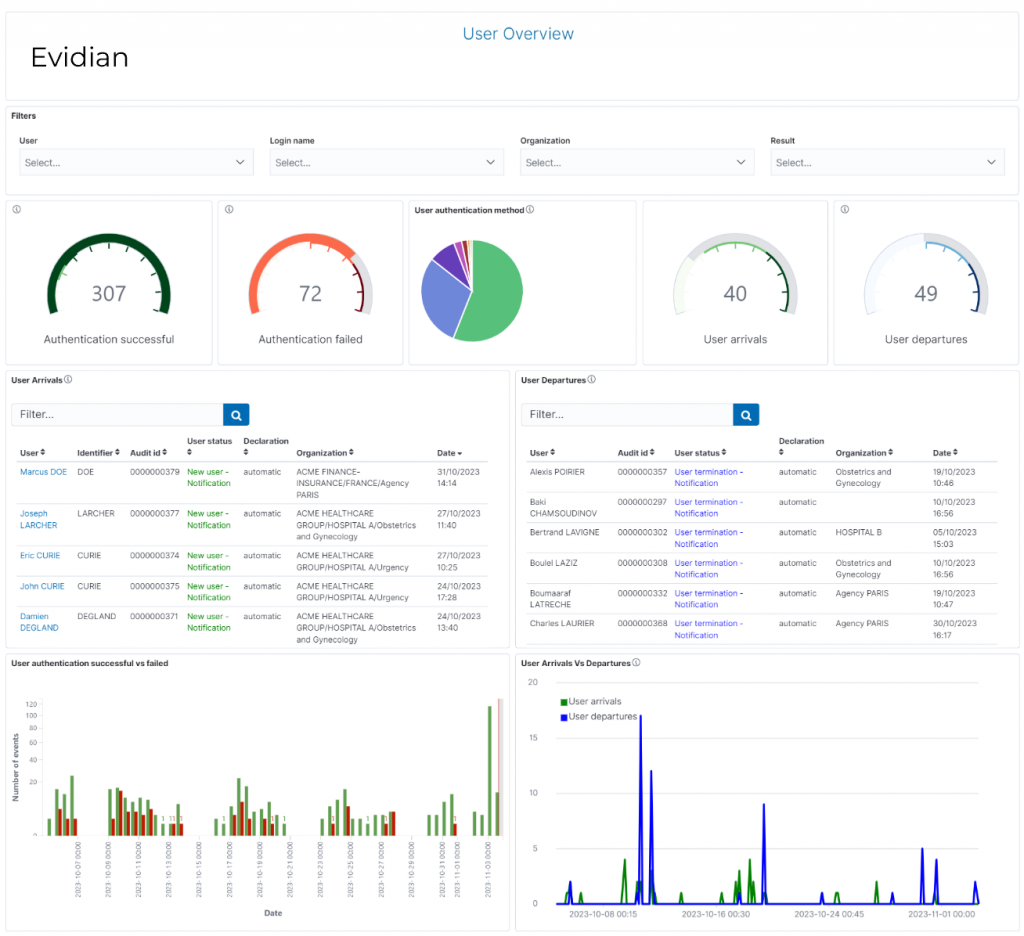 - User lifecycle: arrivals and departures (with the date, user status, automatic or manual declaration...)