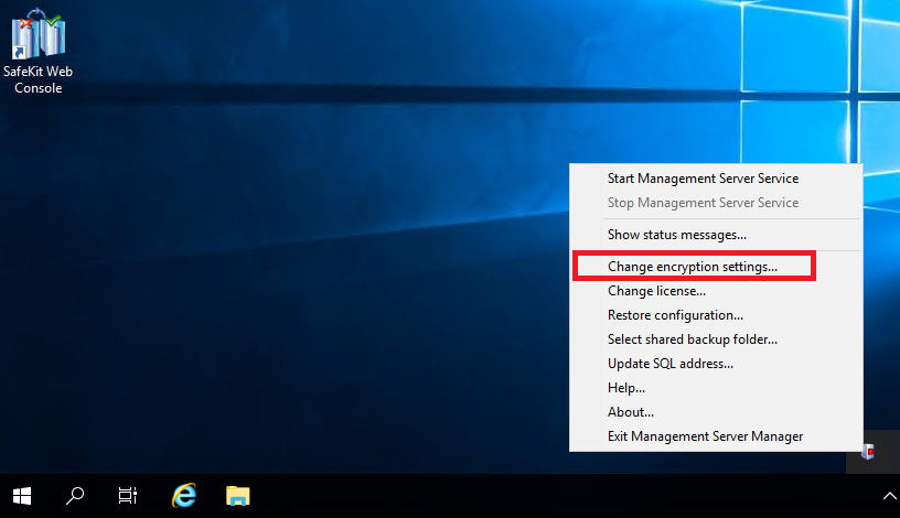 - Right-click on the Milestone Management Server icon in the taskbar.